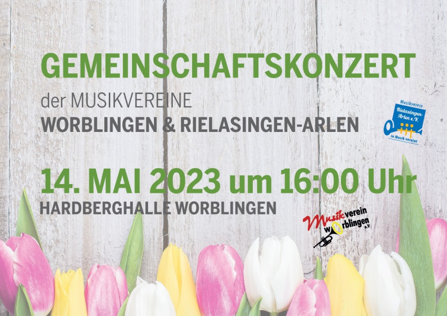 Der Musikverein Worblingen und der Musikverein Rielasingen-Arlen laden am 14. Mai 2023 um 16:00 Uhr zum Gemeinschaftskonzert in die Hardberghalle Worblingen ein