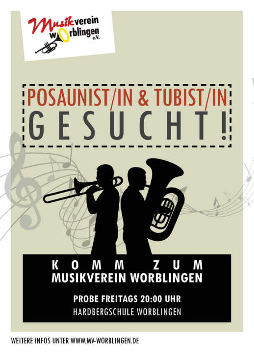 Zur Verstärkung unseres Tiefblechregisters suchen wir engagierte Musikerkolleginnen und -kollegen, die Lust haben, gemeinsam mit uns Musik zu machen.